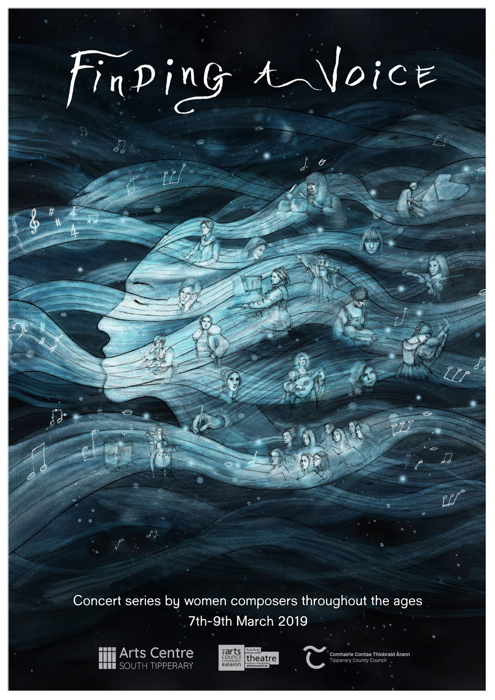 I illustrated the posters for 'Finding a Voice', a concert series by women composers, in Clonmel, 2018 & 2019.