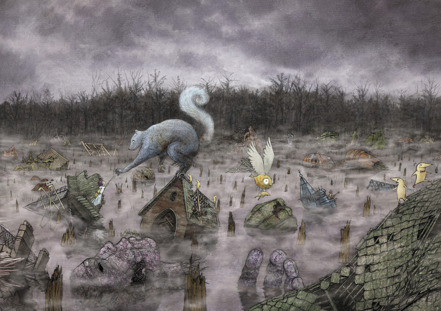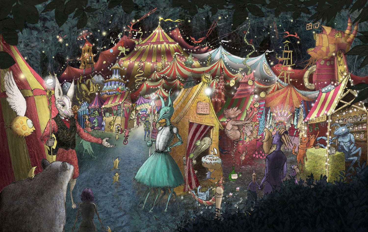 I created the first few illustrations of the Juniper story for a group exhibition called Once Upon a Time, in Roe Valley Arts and Cultural Centre 2011, curated by Desima-Jayne Connolly. I kept developing the visual story and exhibited an expanded version in 2014. Since then it has toured Ireland, showing at various galleries including Galway Arts Centre (as part of Cúirt Literature Festival), the Riverbank Arts Centre and Ards Arts Centre, including at the Townhall Theatre in Galway as part of Baboró, International Arts Festival for Children.