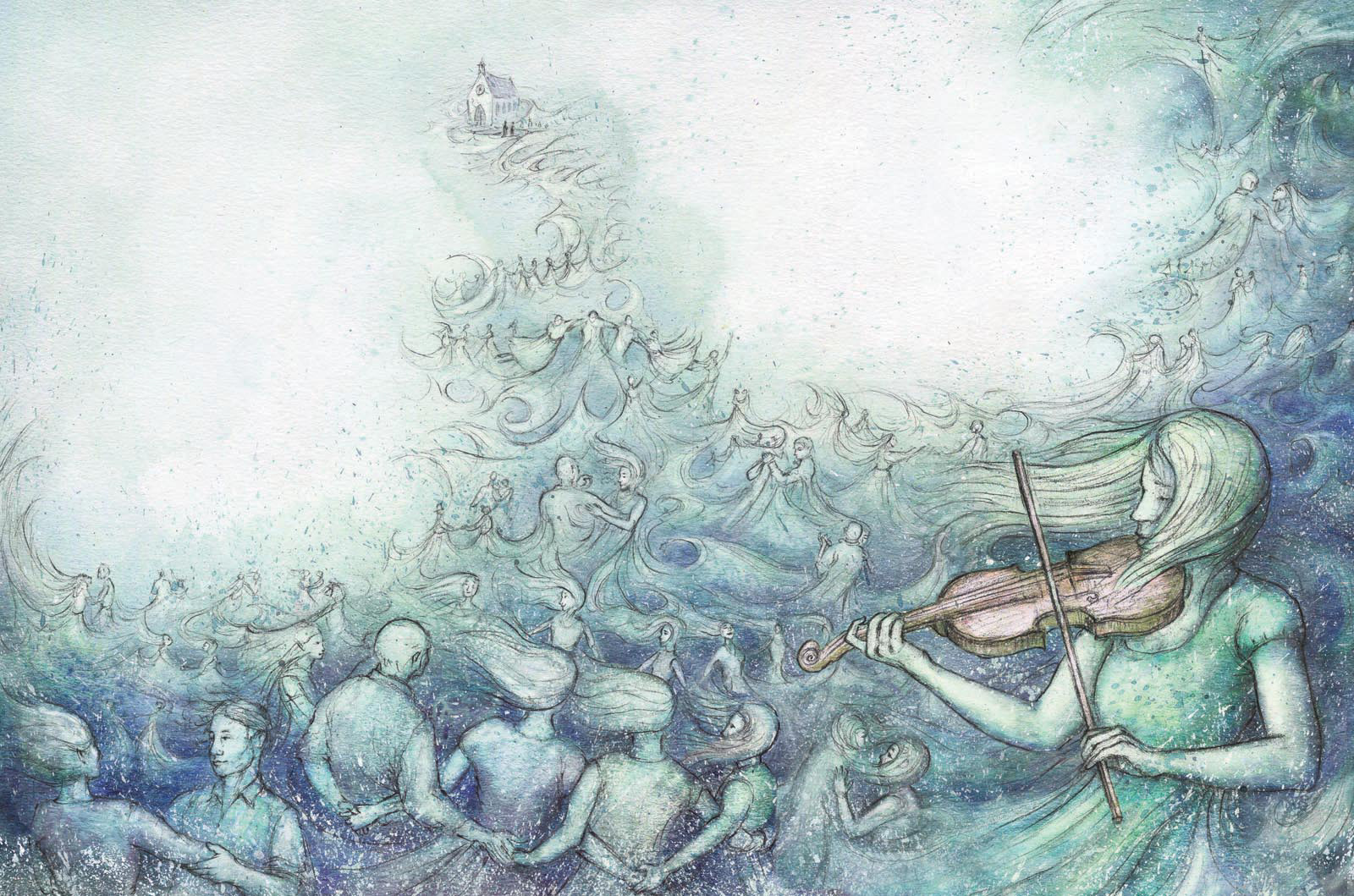 ‘what The Waterboys communicated through music, Shona Shirley MacDonald now brings to life afresh through her magical, mist-swirled illustrations for The Moon Spun Round … gossamer-light drawings dance around the text like a wave on the sea … will enchant readers of all ages and open many eyes to the beauty of the poetry they describe’